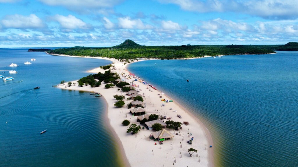 This small village on the Tapajós River, about 30 kilometers from Santarém in Pará state, is where the Amazon reveals a side few tourists ever see. Instead of impenetrable jungle, you’ll find white sand beaches, clear blue waters, and an island (Ilha do Amor) that appears during dry season and becomes the focal point of village life.
