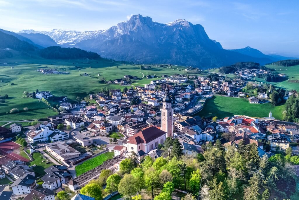 I visited Castelrotto in late September, when autumn was painting the mountain meadows in shades of gold. The village was impossibly charming traditional Tyrolean houses with painted facades and flower-filled balconies, a baroque church with a distinctive spire, and views of the jagged Dolomite peaks in every direction.