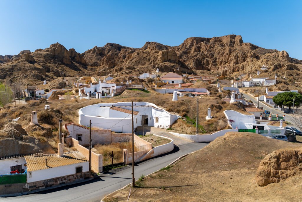 The Barrio de las Cuevas (Cave Quarter) spreads across the rust-colored hills surrounding the town, marked by hundreds of whitewashed chimneys poking up from the ground like strange mushrooms. These aren’t primitive caves they’re sophisticated homes with electricity, running water, internet, and all modern amenities. The cave walls provide perfect natural insulation, keeping interiors cool in summer and warm in winter.