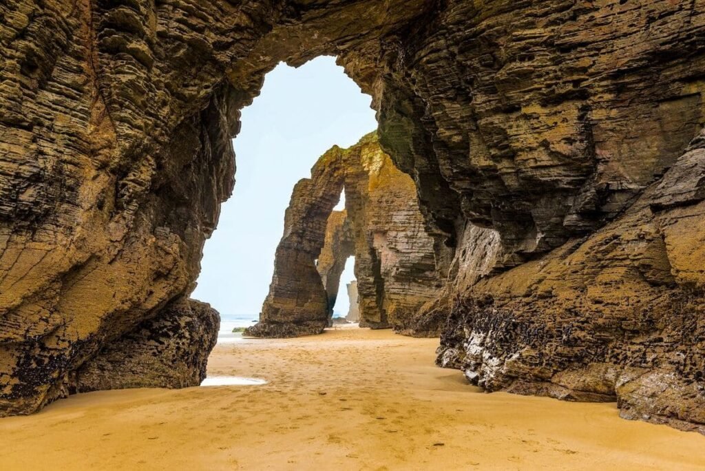 In Galicia, along the northern coast near Ribadeo, lies a beach so extraordinary that its official name is Playa de Aguas Santas “Beach of Holy Waters.” But everyone calls it As Catedrais (The Cathedrals), and one look at the towering natural rock arches explains why.